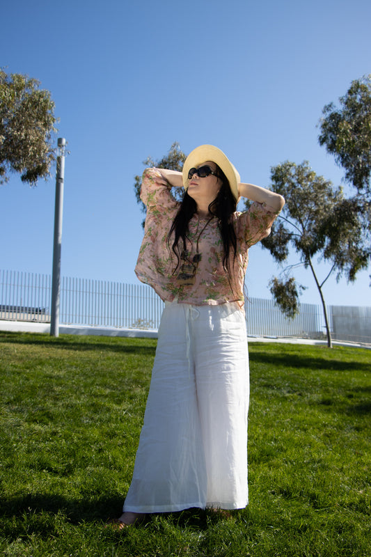 Ramie Full-Length Pants | Loose Fit with Elastic Waist